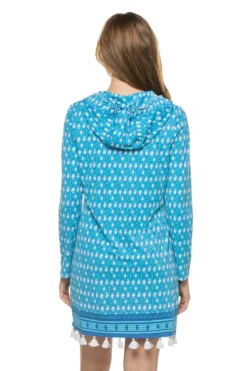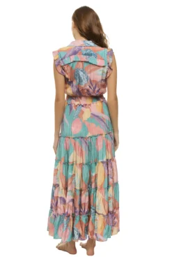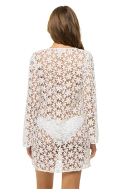 Alex pareo features a textured pique fabric that offers a self tie waist.