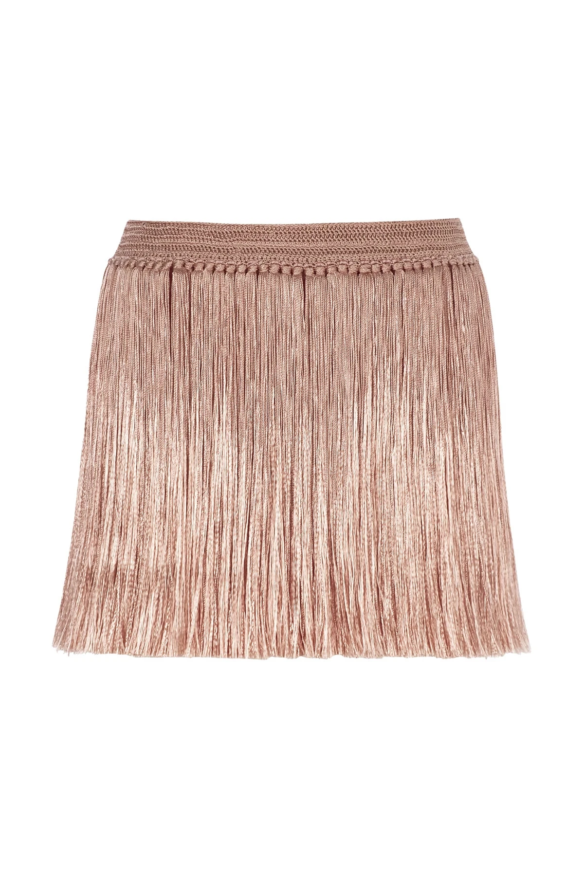 Angelica Fringed Mini Skirt features hand crochet and silky fringe.