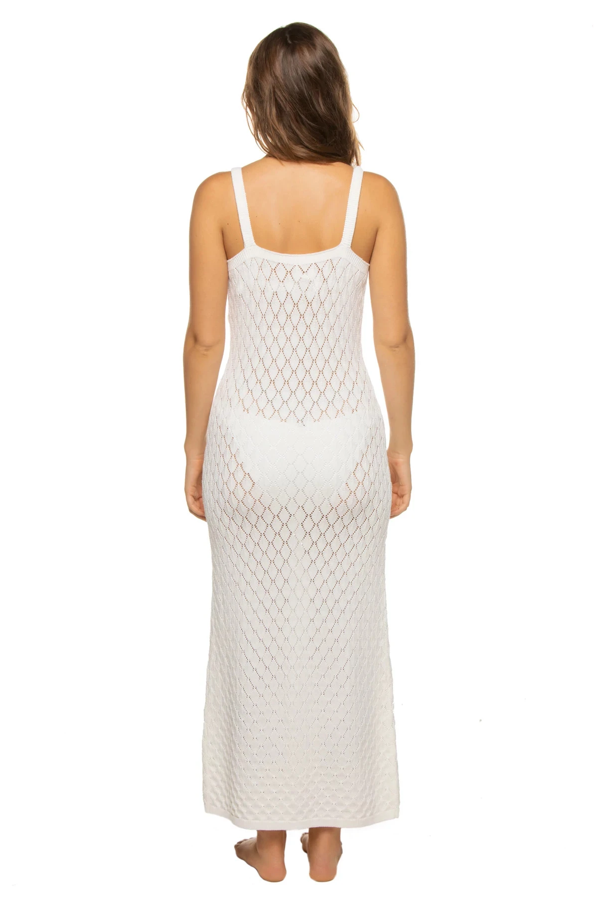 Atlas midi dress is a fitted silhouette that features a diamond knit detail.