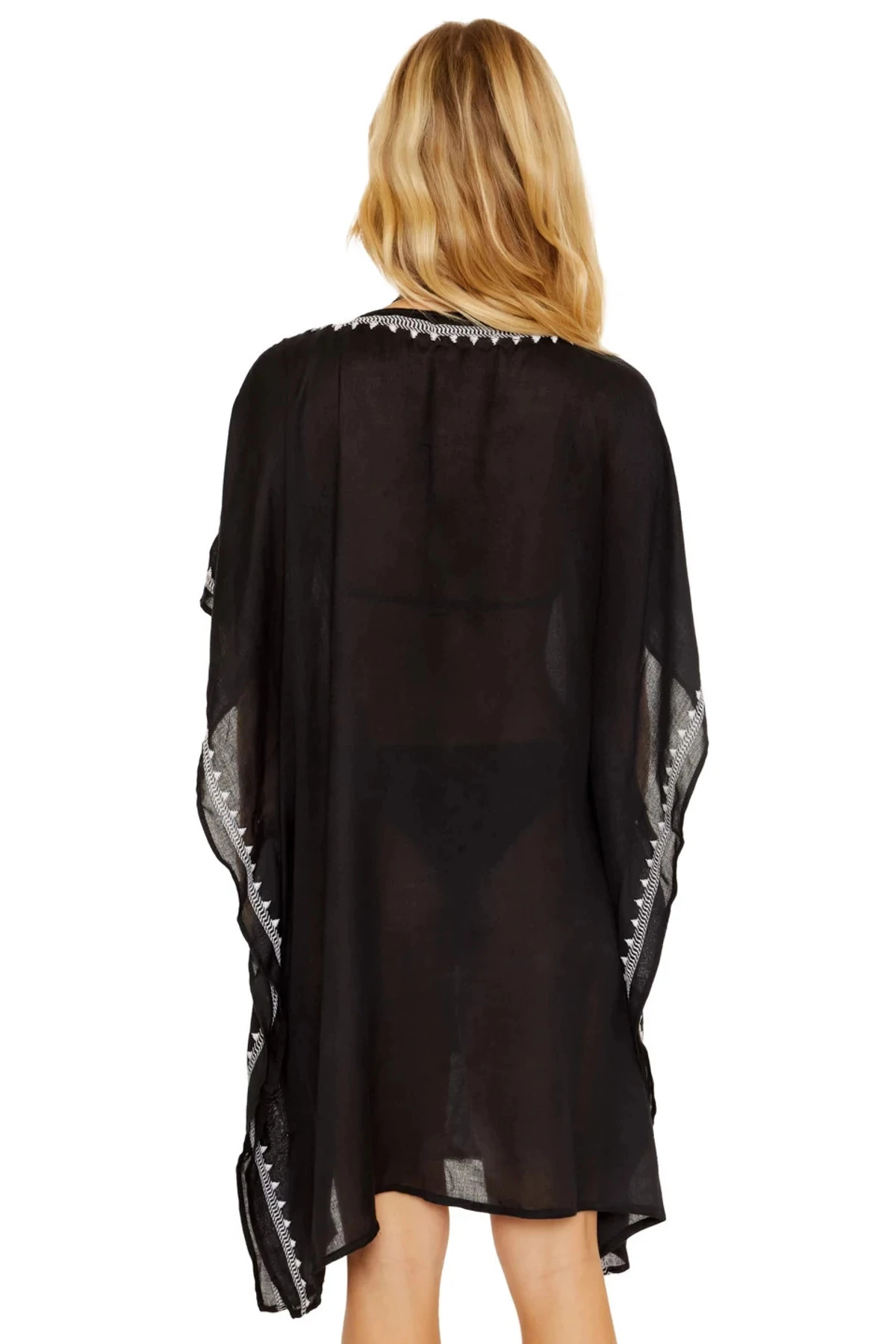 Bonita kimono features contrast embroidery and front lace up tassel ties.