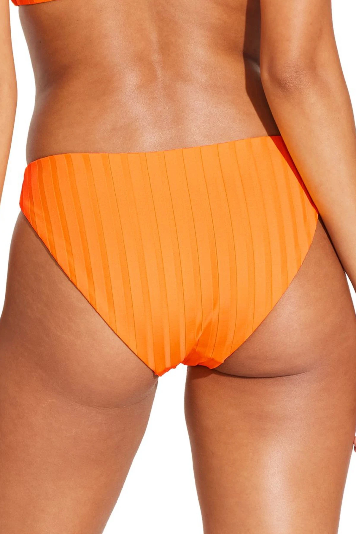 Cali bikini bottom features a ribbed texture and offers a high leg cut and moderate coverage.