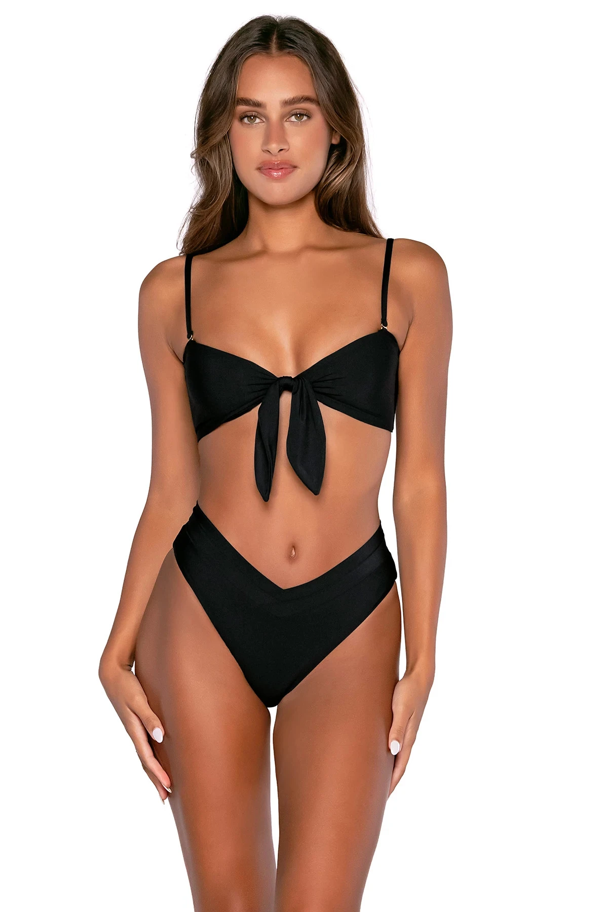 A functioning tie for a minimal customizable fit and removable straps for a seamless tan. The Eloise Top can be worn two ways, with the tie in front or in the back.