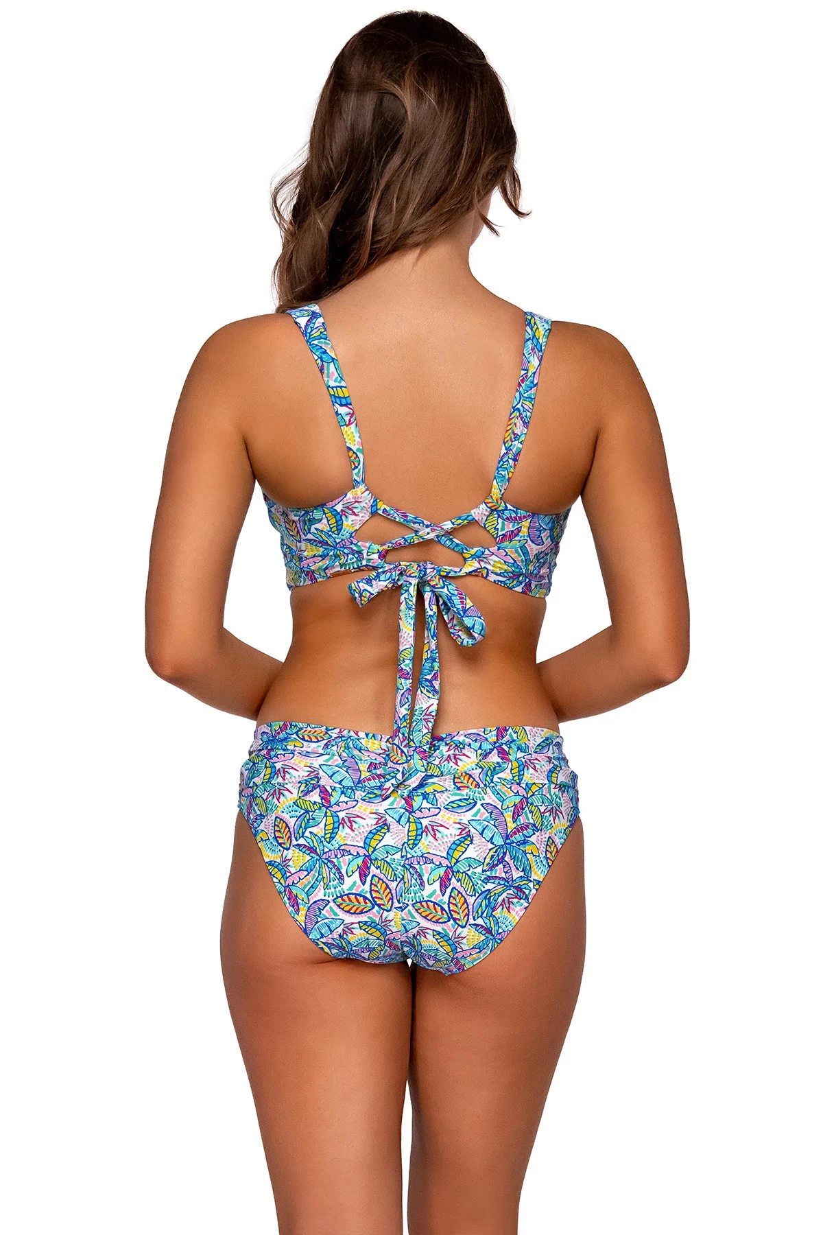 The Elsie Top is a cute, crossover style. The “V” neckline and wide straps provide just the right amount of coverage. The back stands out with its soft, criss cross interlacing tie detail. Shirring on the bust adds a soft and subtle accent. It also has an underwire and removable cups.