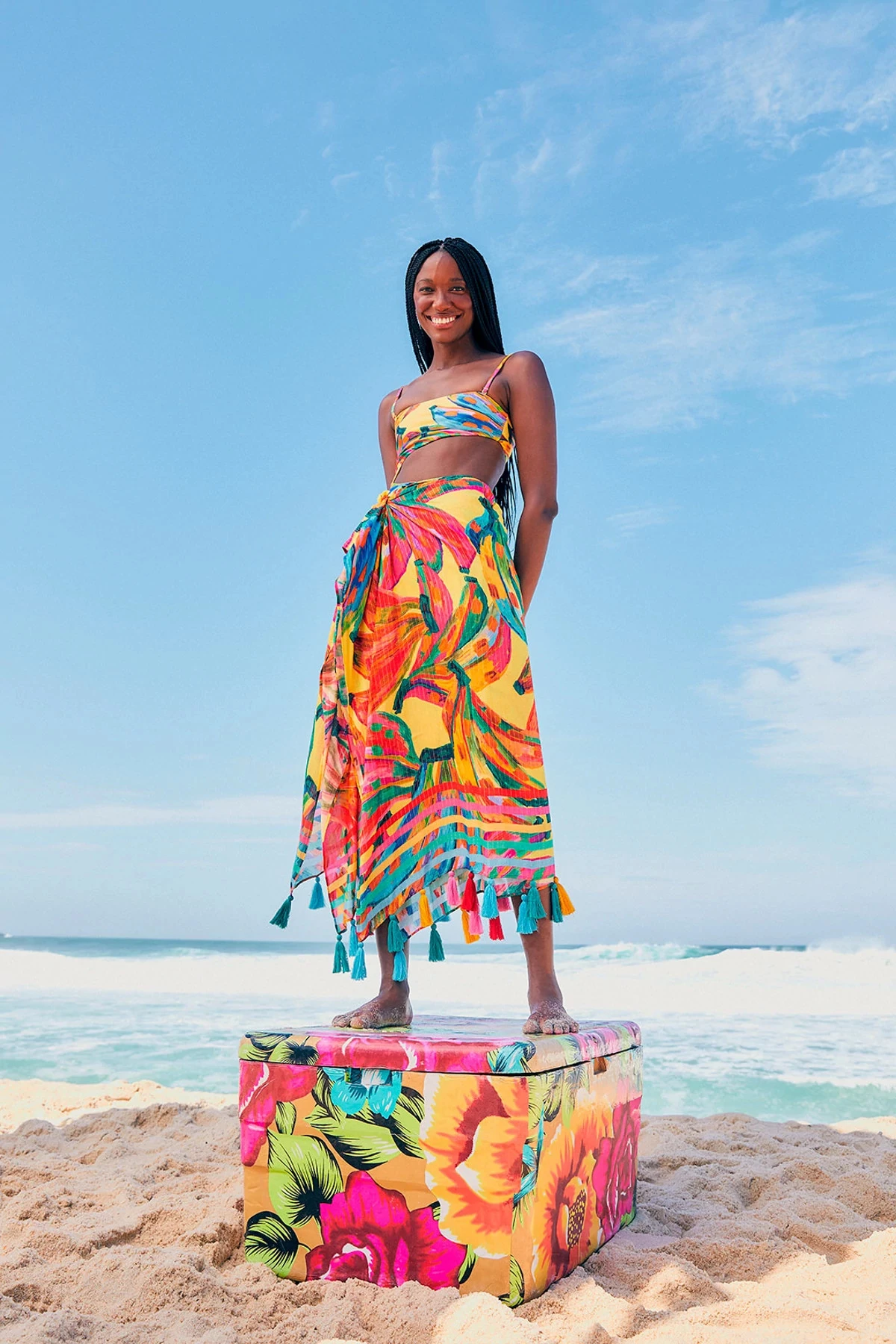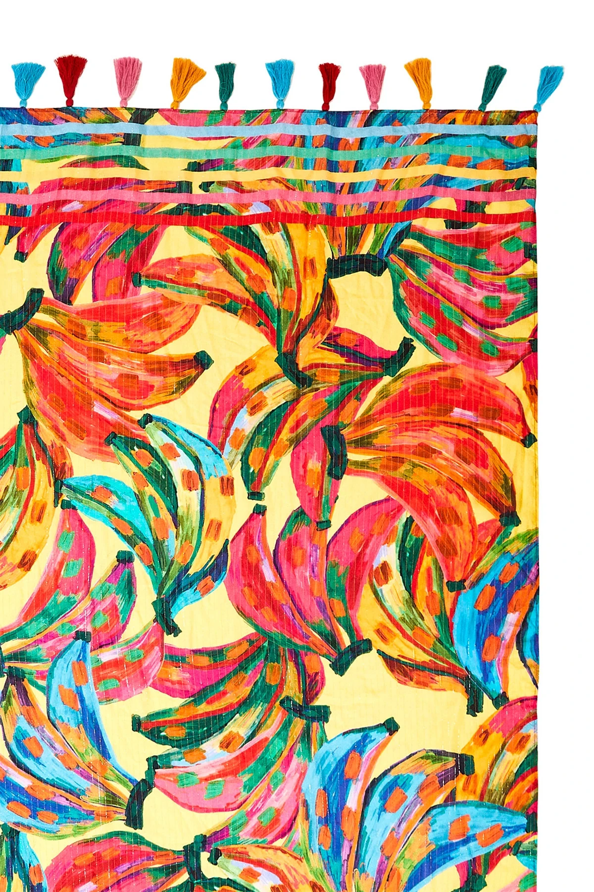 Colorful bananas pareo features a bright and unique print and offers a tie side closure.