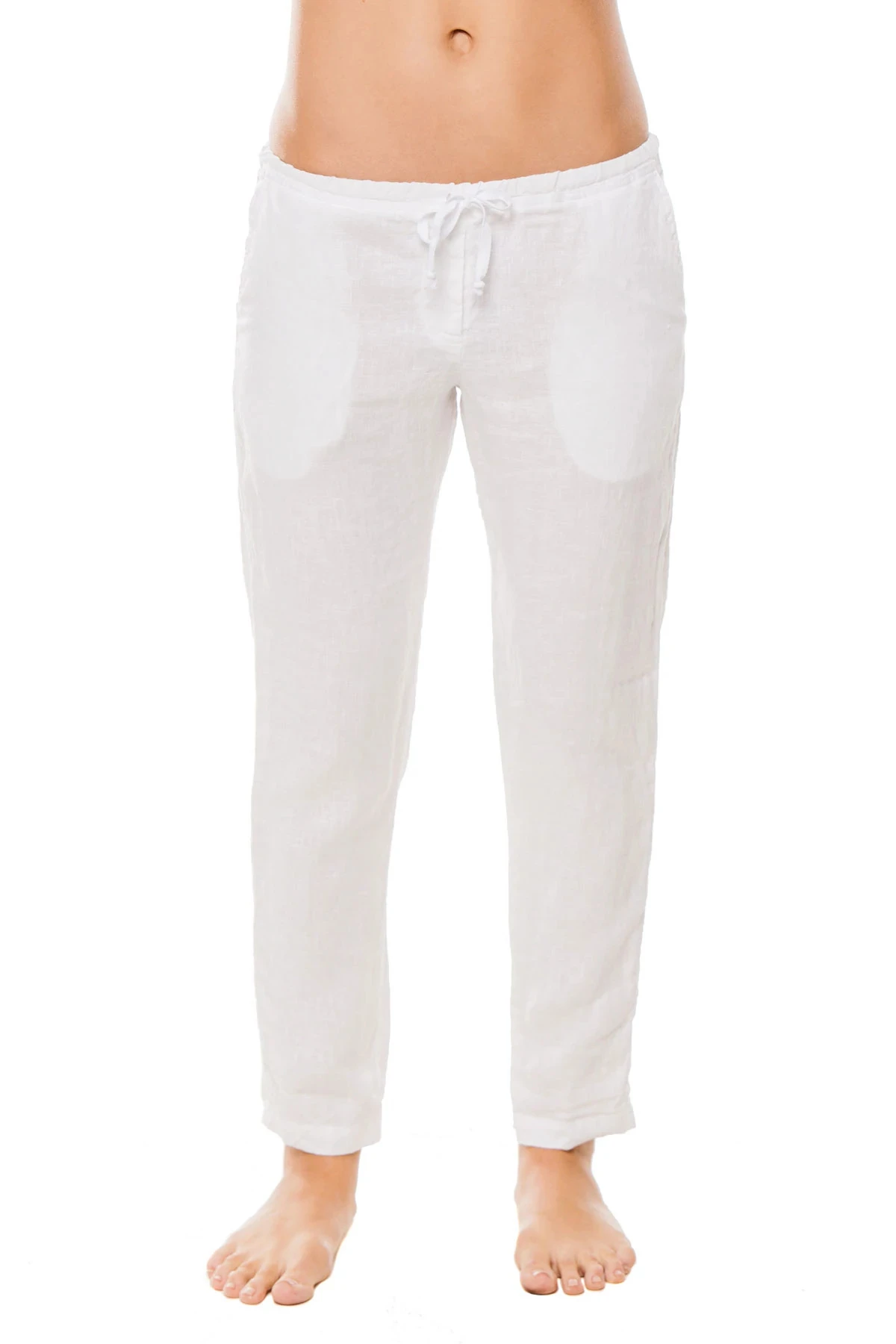 Linen pants with pockets and drawstring waist.