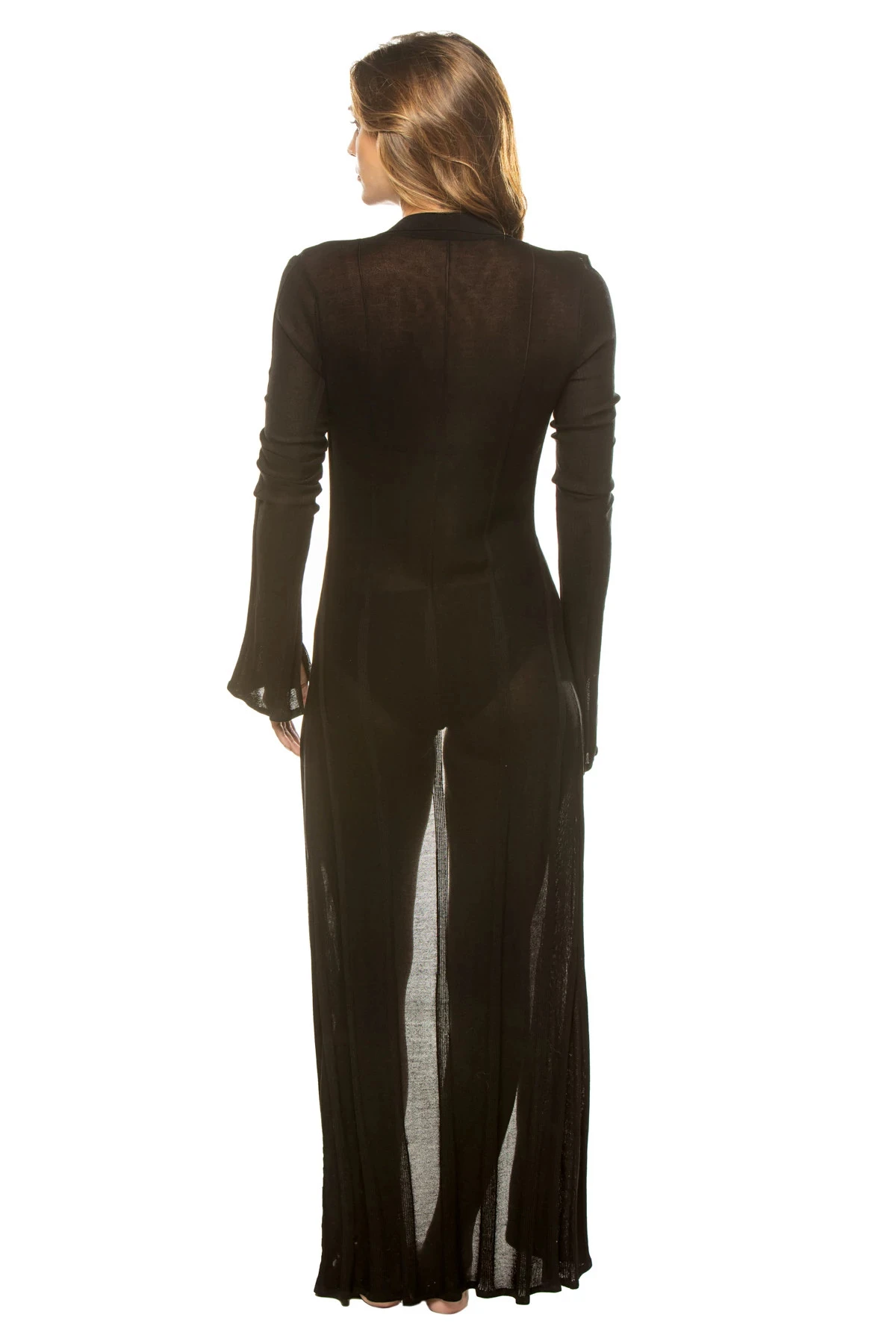 Lucia robe with collar and long sleeves features O-ring hardware detail.