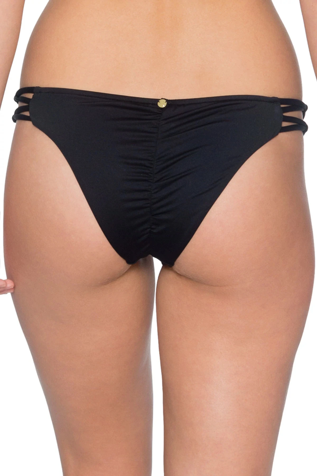 Pucker up in this strappy, beachy bottom. Continuing our signature cinched back but with a new addition of macramé strapping on the side. Feel confidently comfortable in this signature bottom that matches perfectly with any top.