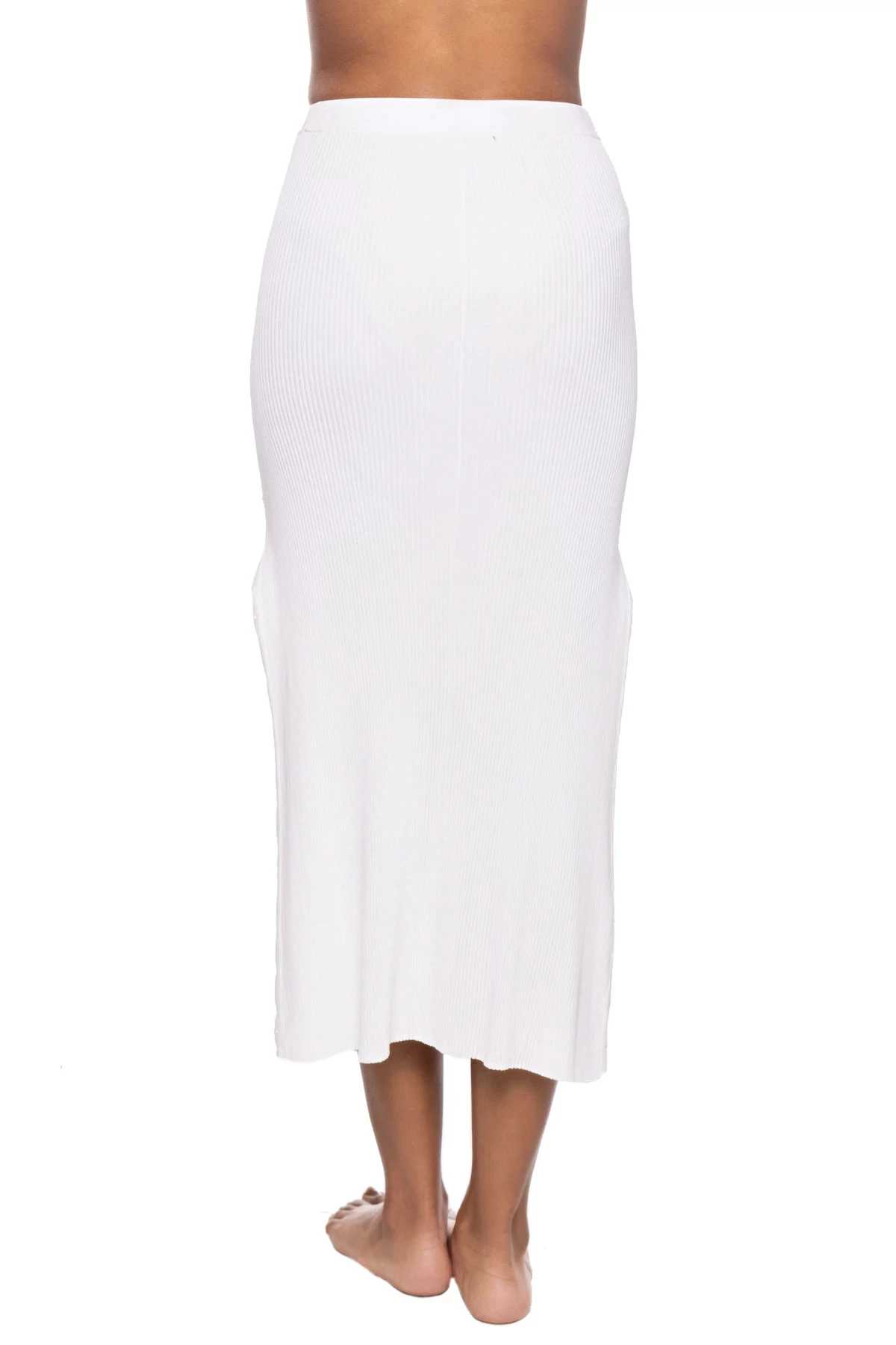 Marina is a knitted midi skirt that offers buttons down the sides that can be worn open or closed.