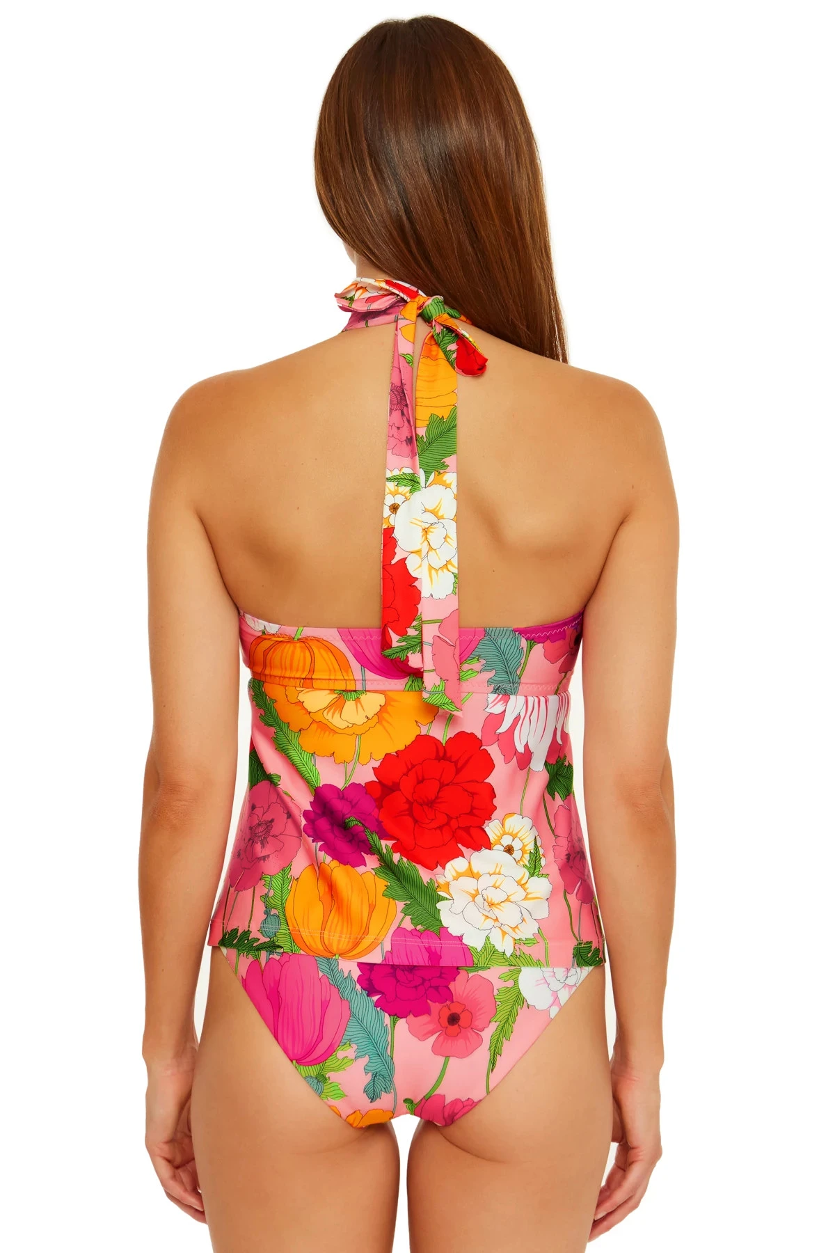 Sunny Bloom tankini top features a bold floral print and offers a multi-wear option as a strapless bandeau or with halter neck ties.