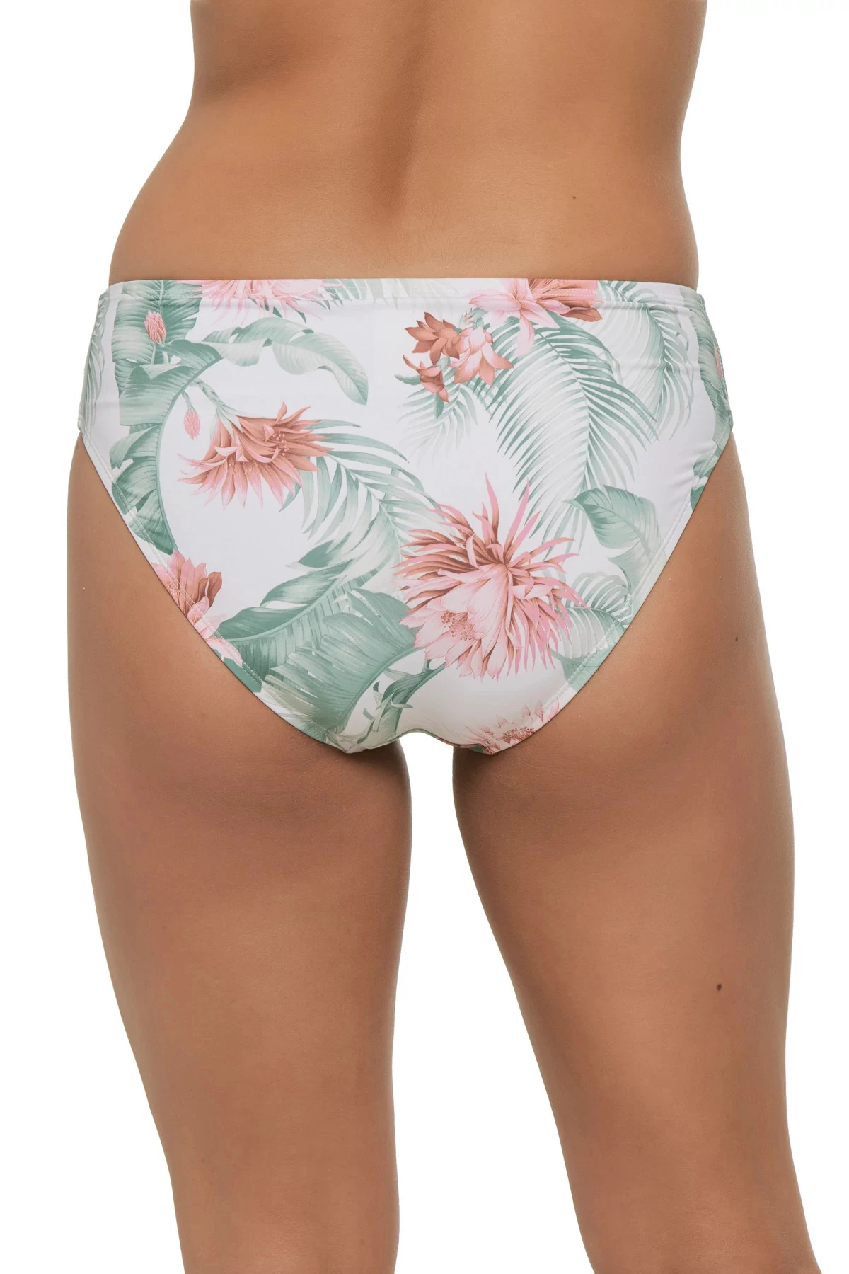 Breezy Botanical hipster bikini bottom features an alluring floral print with moderate coverage.