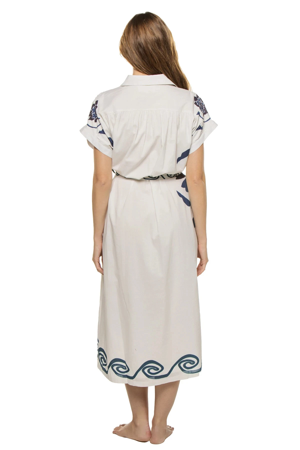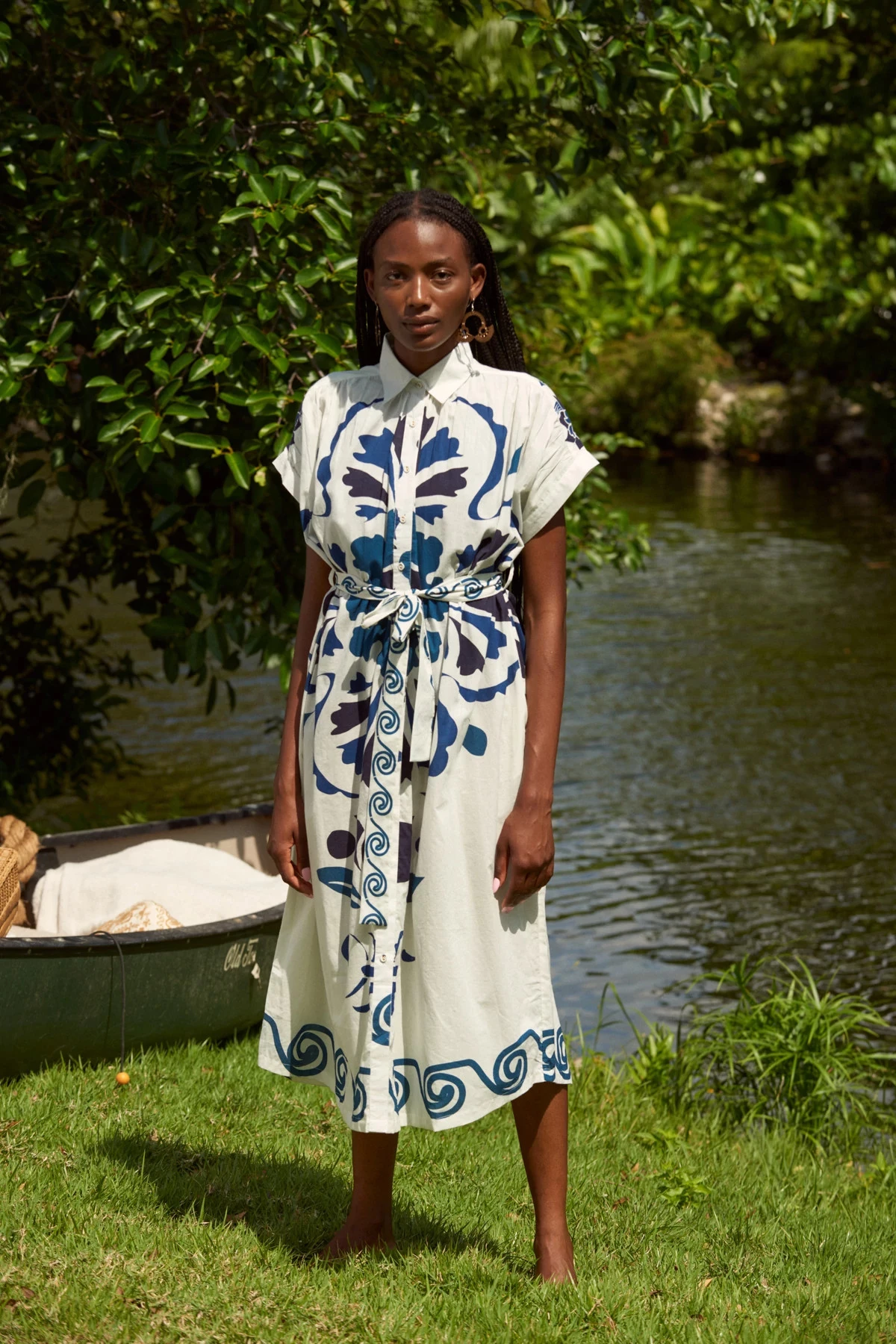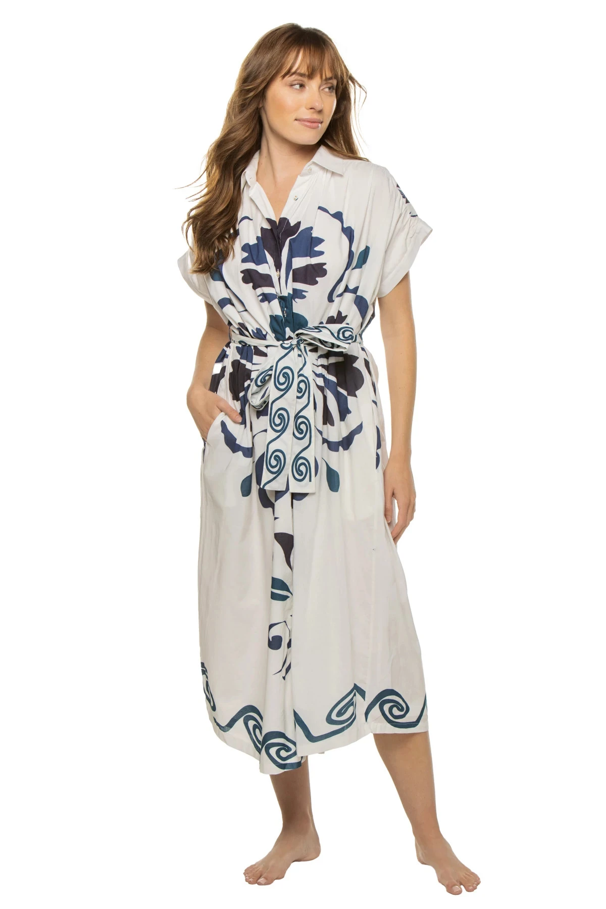 Valerie kaftan dress features a button up front with a collared neckline and offers a removable tie belt.